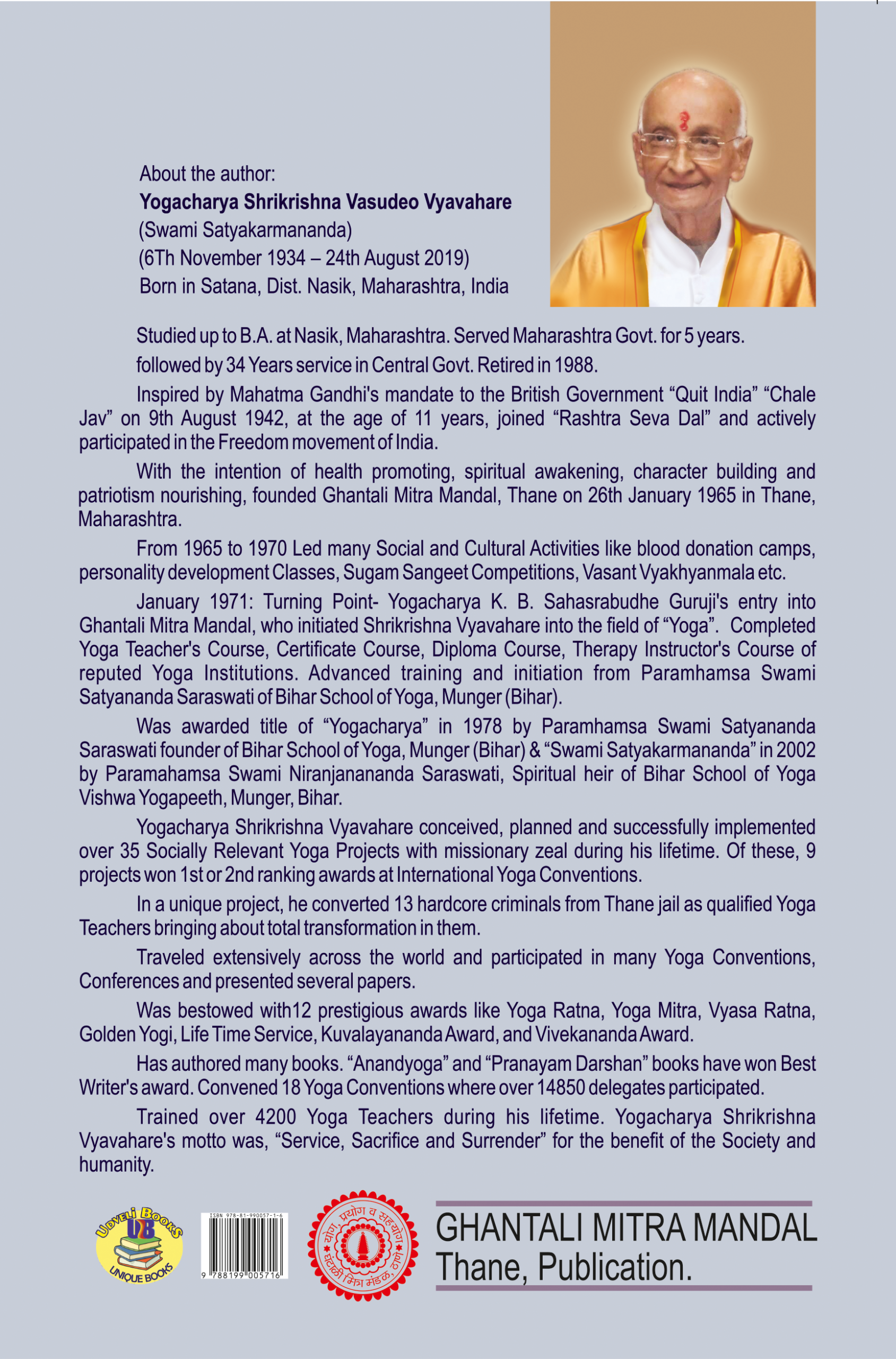 Yogacharya Shrikrishna Vyavahare has given an all-encampassing deliberation about Pranayama. Hence, this book is going to serve as a reference book to the old as well as new Yoga practitioners. The Yoga teachers and instructors will gain new direction and inspiration when they study this book.